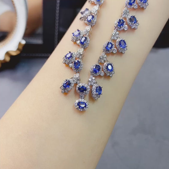 Natural sapphire necklace. Freshly baked, with high clarity and excellent color, the main stone size is 3 * 4mm, and the precision 925 silver inlay supports detection (863004)