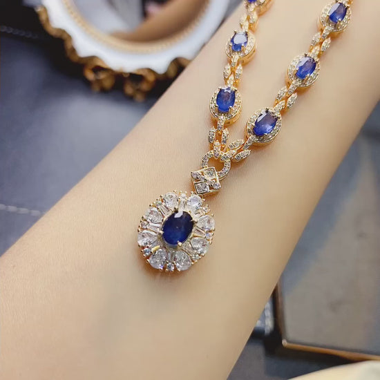 Natural sapphire necklace. Freshly baked, high clarity, excellent color, main stone size 5 * 7mm, precision 925 silver inlay supporting detection (863004)