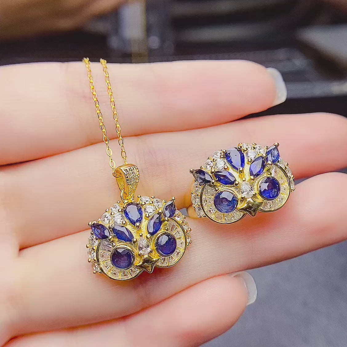The natural sapphire set has arrived, with excellent color and crystal clarity, sparkling with fiery colors. S925 silver precision inlay is stunning, with a main stone size of 3 * 3mm.