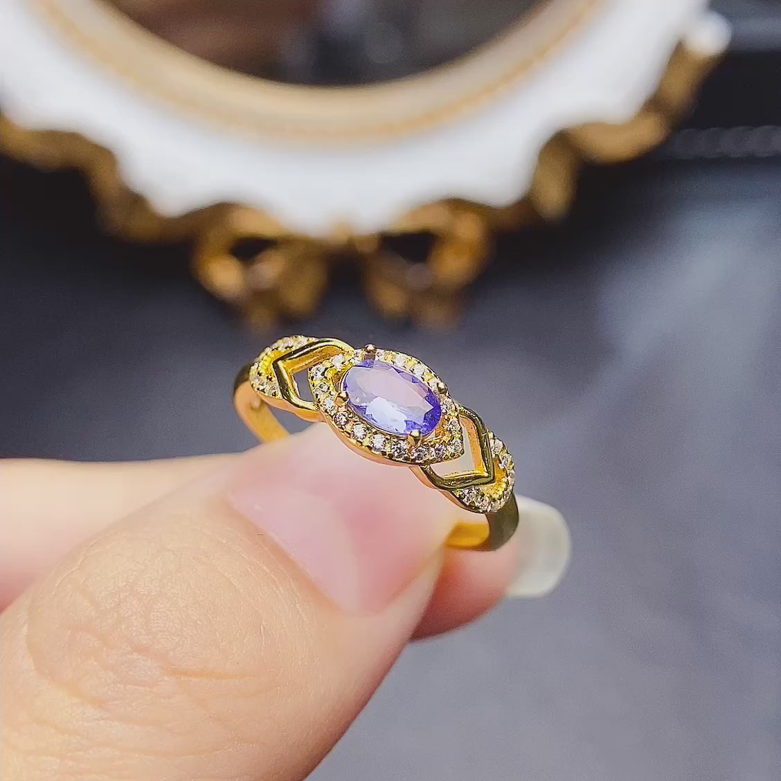 Natural Tanzanite ring, super beautiful color, super amazing, super amazing!! Size 4 * 6mm, full of texture, fantastic! S925 silver inlay (8640011)