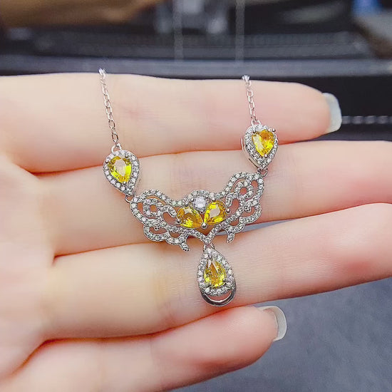 The natural yellow and blue gemstone necklace has arrived, with excellent color and crystal clear and sparkling colors. It is exquisitely inlaid with S925 silver, which is stunning. The main stone is 4 * 5mm. (962005)