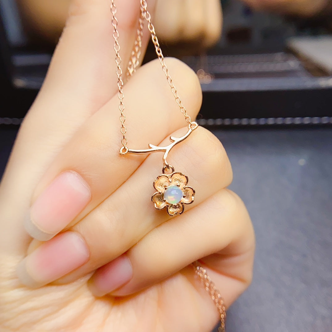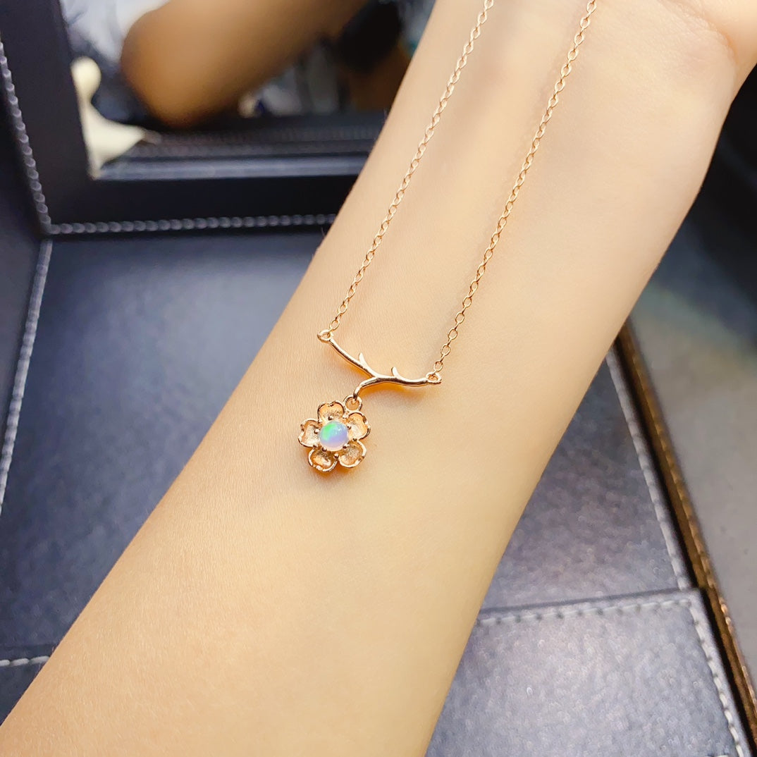 New Opal necklace, fully pure body quality, excellent color, natural and pure, not piezoelectric baking color, fully pure body quality, 925 silver precision inlay, size 4 * 4mm, pure natural Opal